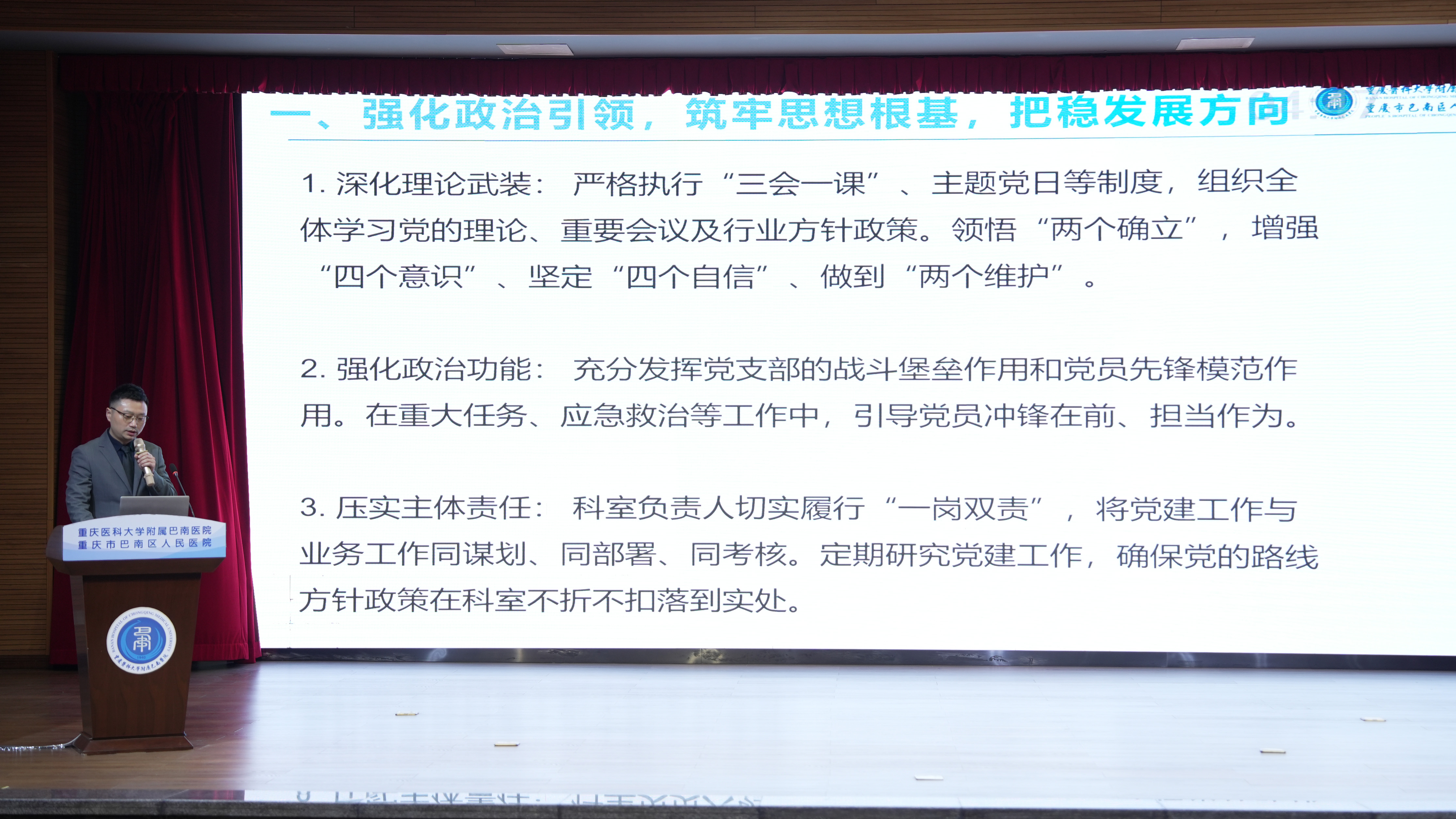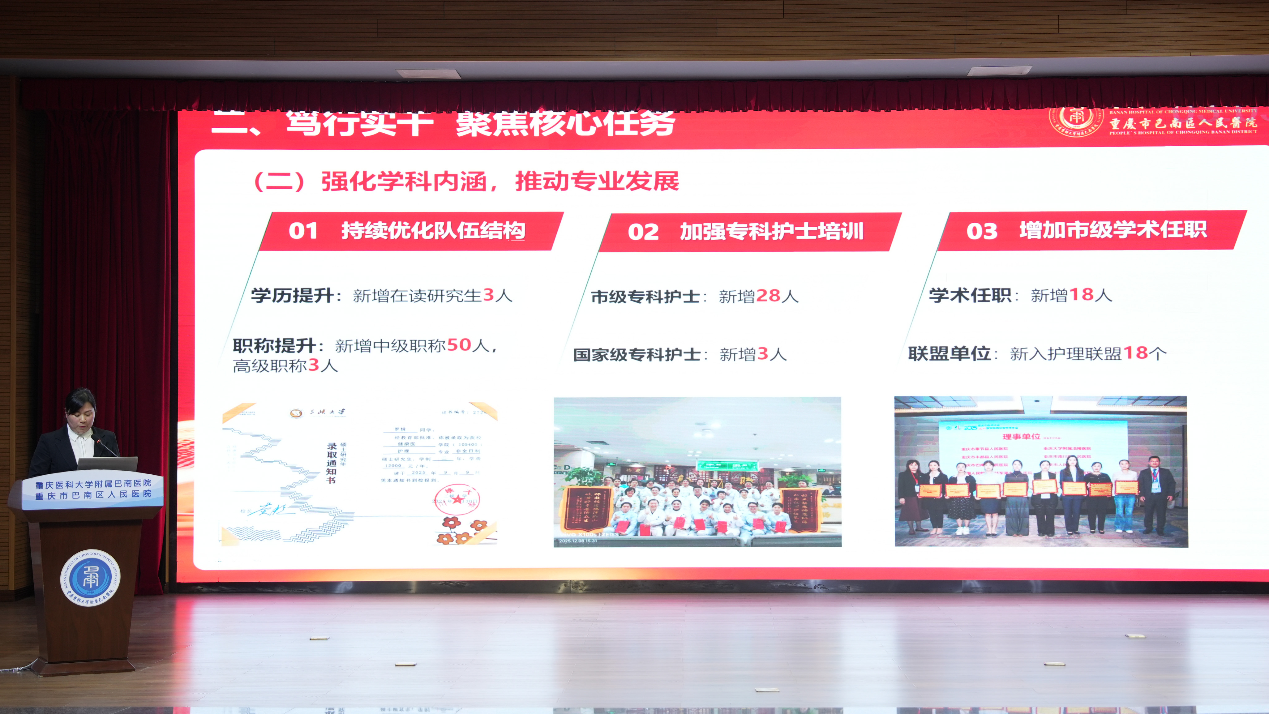 来自临床、门诊医技、行政后勤三大片区的66个科室负责人依次登台述职。大家紧扣年度目标,以数据亮实绩、剖短板、明方向,循着 “结构调整、提质增效” 的发展思路,将述职评议转化为破局攻坚的强劲动能。