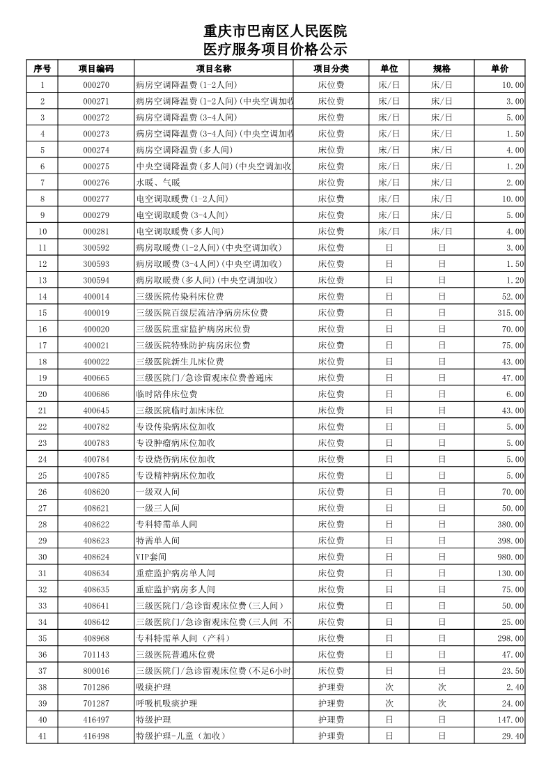 重庆市巴南区人民医院医疗服务项目价格公示 来源:财务科 发布时间:2026-04-23 08:34:35 浏览次数: 次 【字体:小 大】 (2026年4月23日更新) 终审:张玲玲 分享到: 【打印正文】