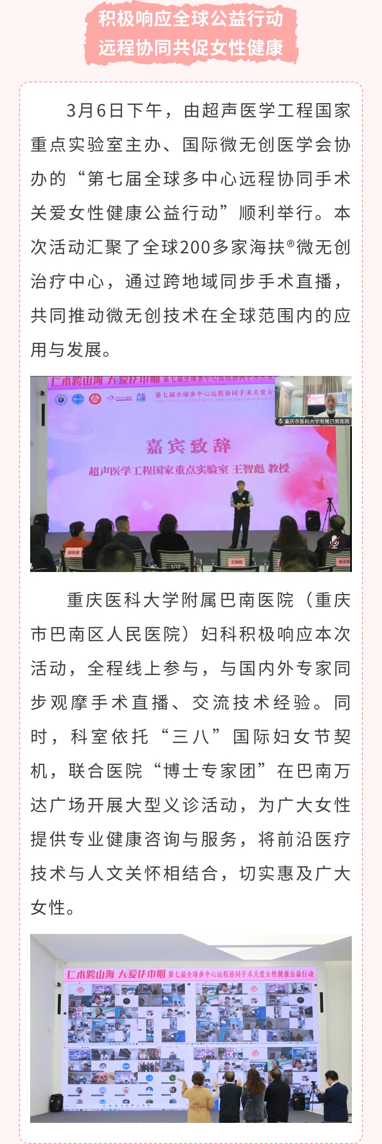 【健康“医”靠】仁术跨山海 大爱扶巾帼—— 聚焦全球公益行动与三八义诊,重医附属巴南医院妇科在行动 来源:妇科 发布时间:2026-03-10 17:17:35 浏览次数: 次 【字体:小 大】 Part 01Part 02Part 03Part 04 终审:张玲玲 分享到: 【打印正文】