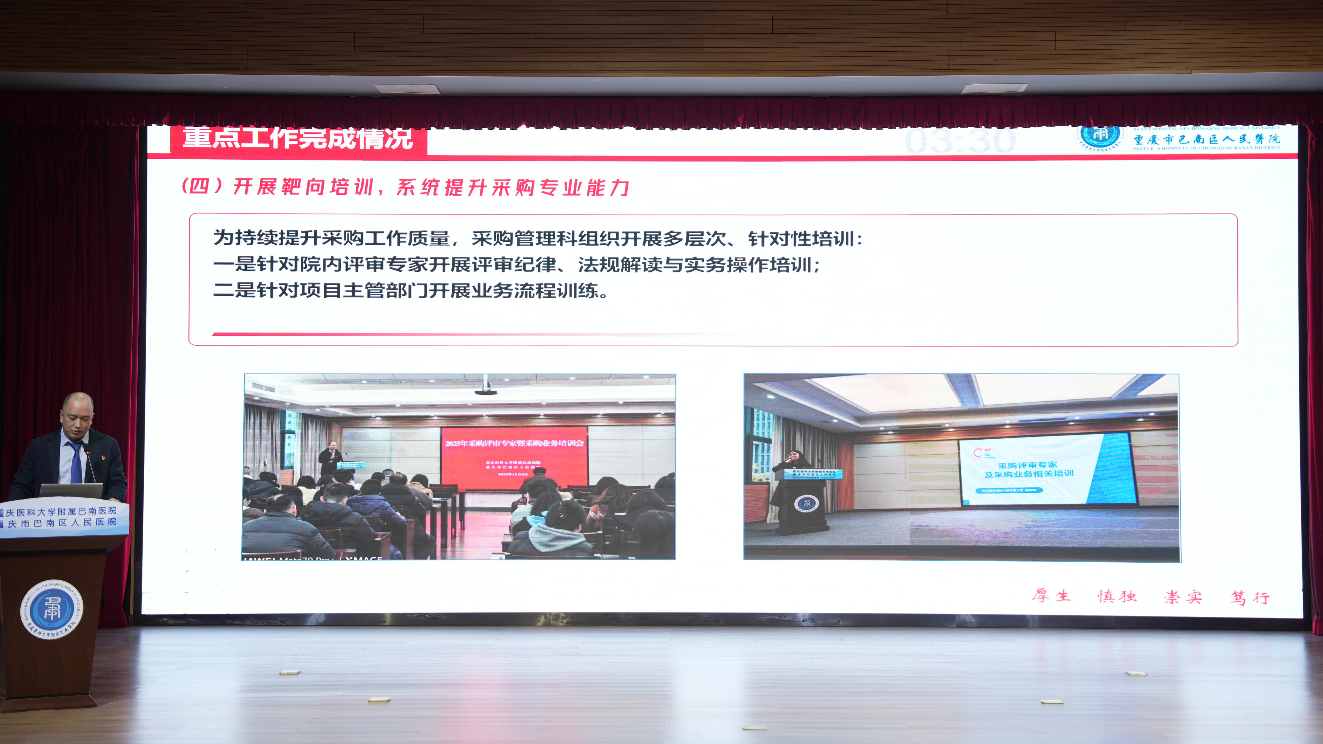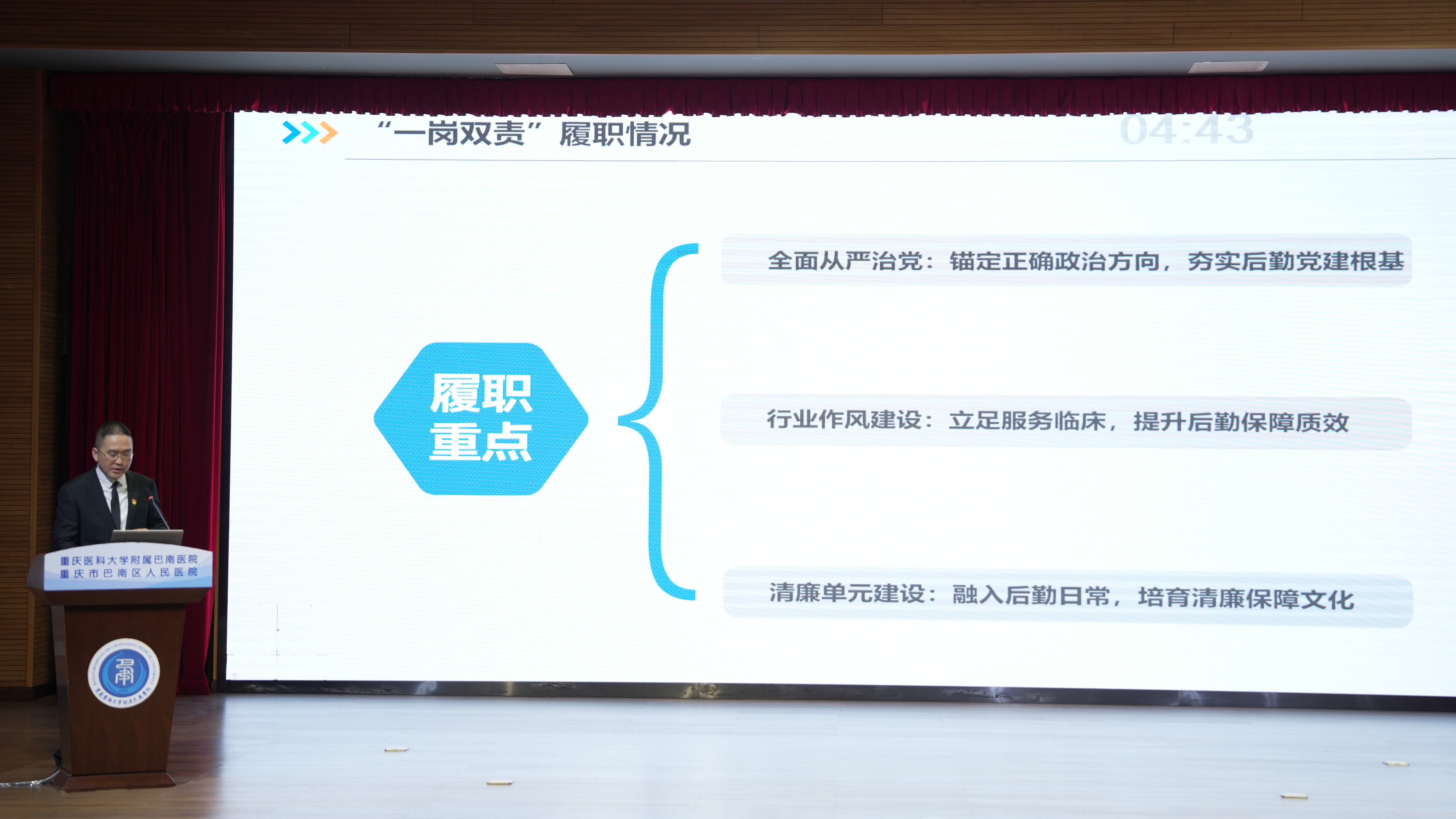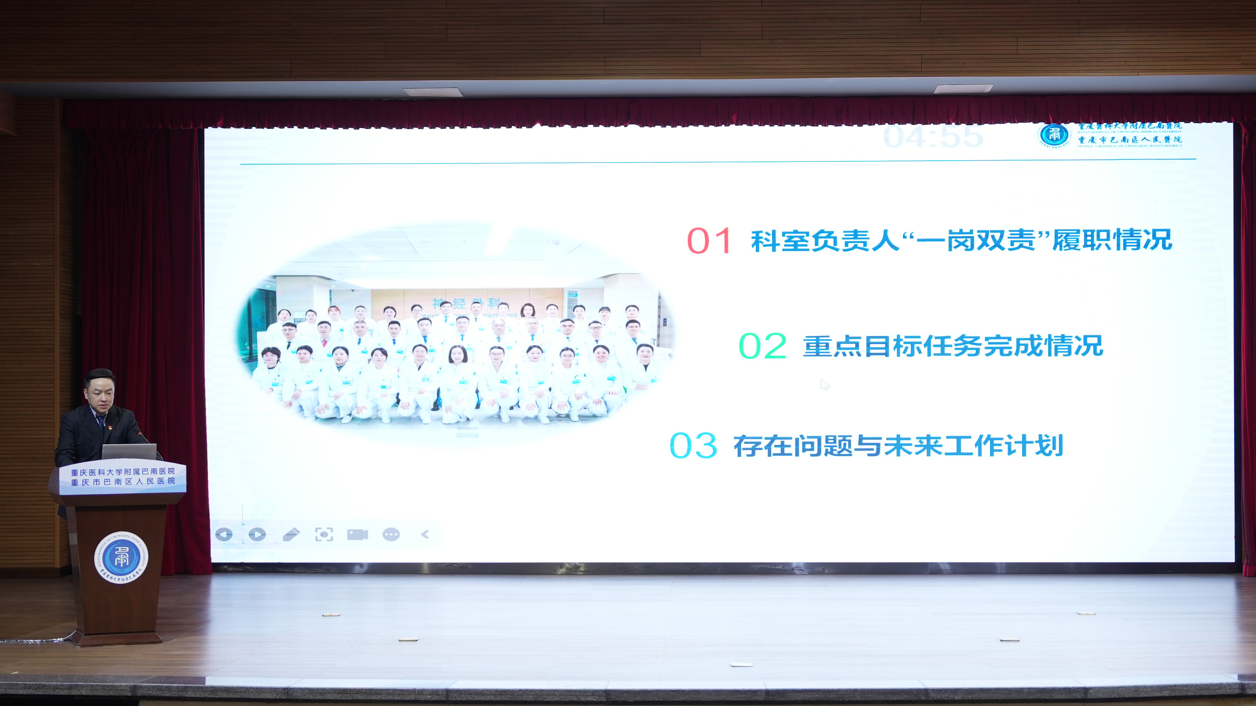 来自临床、门诊医技、行政后勤三大片区的66个科室负责人依次登台述职。大家紧扣年度目标,以数据亮实绩、剖短板、明方向,循着 “结构调整、提质增效” 的发展思路,将述职评议转化为破局攻坚的强劲动能。